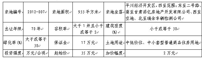 四、本次拍賣出讓的詳細資料和具體要求,見拍賣出讓文件。申請人可于2013年03月27日至2013年04月08日到白銀市國土資源局獲取拍賣出讓文件。