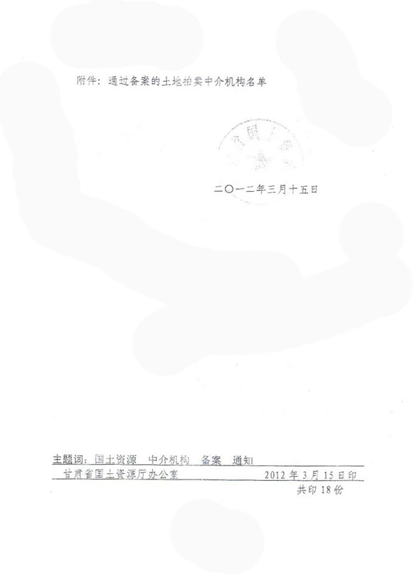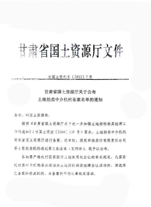 省國土廳“土地拍賣中介機(jī)構(gòu)” 文件